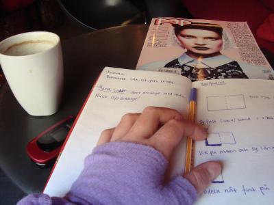 Packade ner en fet modetidning, min anteckningsbok, en penna och min kamera i väskan och åkte till Haga och satte mig på ett fik med en kopp kaffe och spånade fram en hel del fina ideér som kan göra min vinterkollektion till en av de bästa.