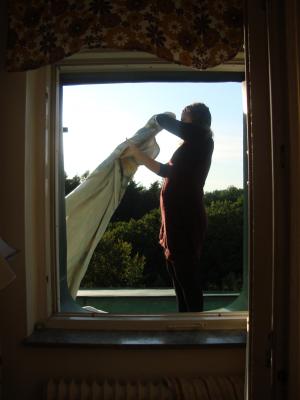 När solen gått ner bakom kullarna klättrade vi in genom köksfönstret och plockade fram ost, kex och vin. Lagom till det dök Karin upp.