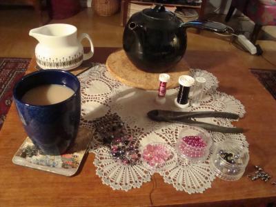 Nu kopplar jag av i soffan med en kopp te, lite tv och pysslande med ett armband.