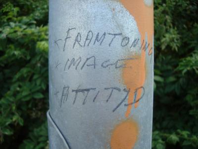 På väg till stan, en svettig onsdag i juli, får jag syn på denna minnesvärda "grafittitag" på en lyktstolpe.