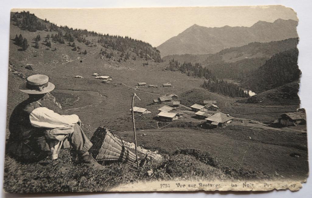 Veckans vykort hittade jag i en antikaffär i Prag. Texten är halvt bortnött men bokstavskombinationerna ser franska ut. Vyn ser Schweizisk ut.