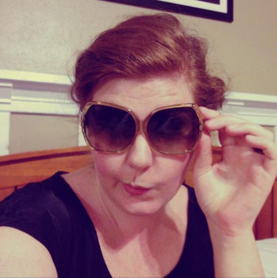 David had a meeting one day and I wandered around Hollywood Boulevard and Sunset Avenue for a couple of hours. In a vintage shop I found these sunglasses. Needed a pair of sensible and useful sunglasses to wear when I don't want to wear my heart shaped ones.