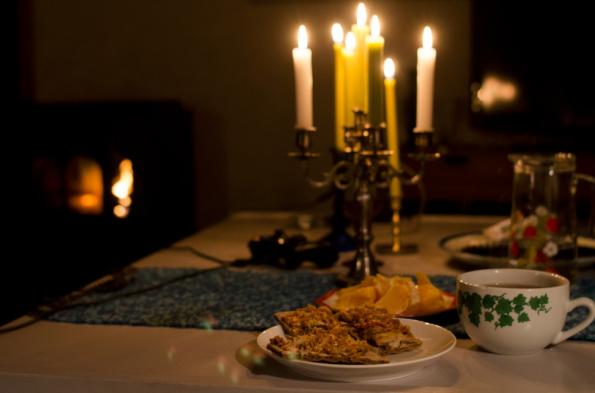 Spent the evening eating good food, getting warm under blankets, drinking tea and playing videogames in front of the crackling fireplace.