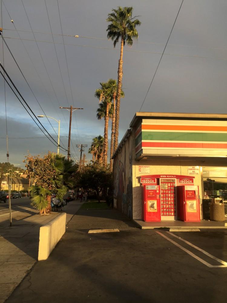 I ended up outside this 7Eleven for an hour waiting for David to come pick me up during rush hour. I sat on that concrete divider thingy eating fresh fruit and watching the sun set.