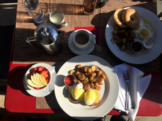 I searched instagram and yelp for the best breakfast places both before we went and after we arrived in LA, and since the breakfast at our hotel wasn't very good and also not included we went to a lot of breakfast places during our two week trip. One of those restaurants I found was bld. We sat outside in the sun and I ordered the eggs benedict because that had looked really nice on the photos I found on internet taken by customers.
