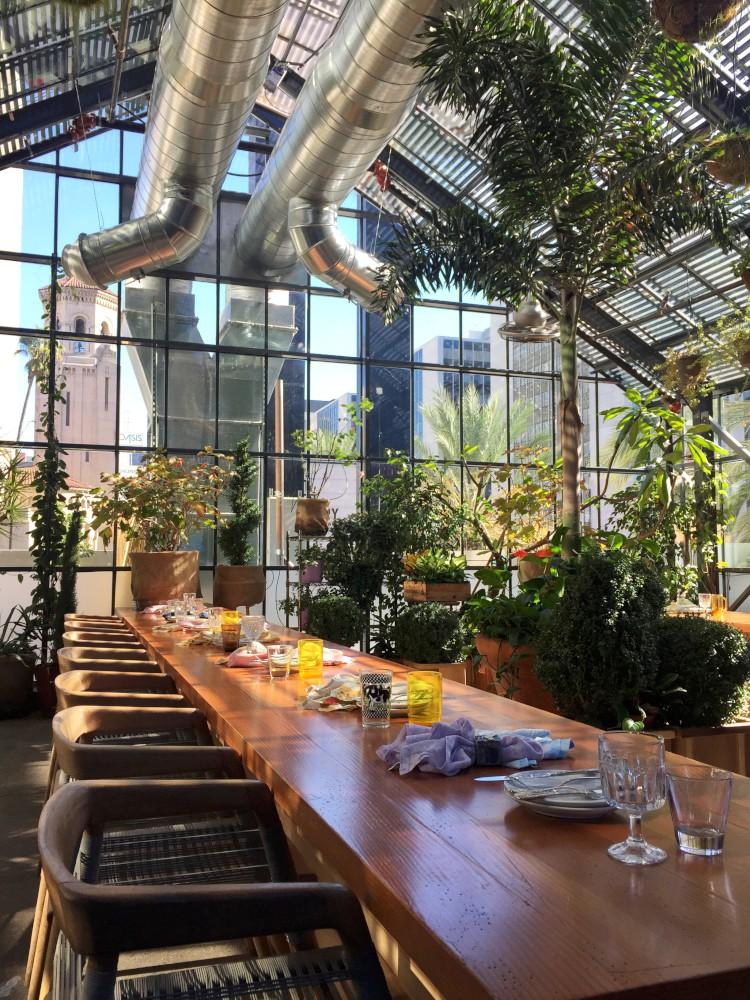 The Commissary at The Line Hotel. A restaurant situated in a beautiful greenhouse on top of a building in Korea Town with wonderfully weird menus and really good food.