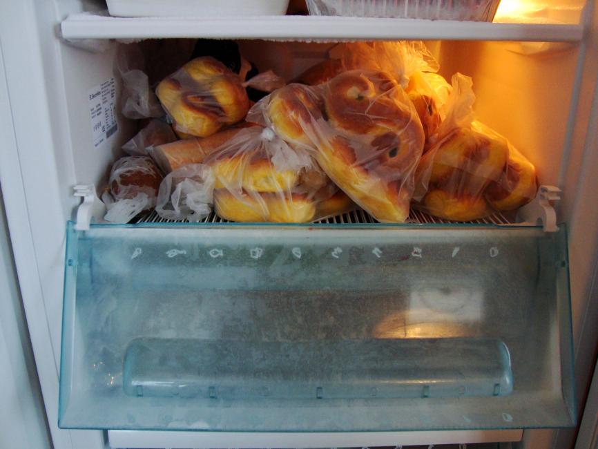 Frysluckan till lussekatterna öppnades. Och sedan stoppades bullarna in i