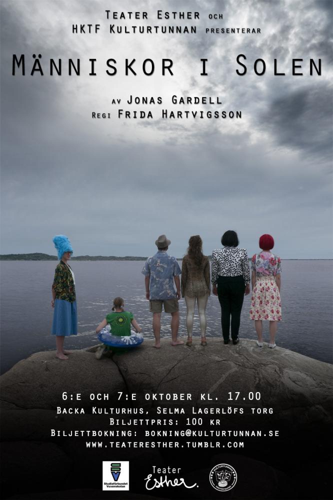 Nu är det inte långt kvar hörni! På lördag och söndag (6,7 oktober kl 17.00 på Backa Kulturhus) spelar vi i Teater Esther vår uppsättning av Jonas Gardells "Människor i solen".