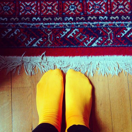 One day I decided what to wear after I've chosen the socks. So I was all black with yellow pops of color in socks and accesories.
