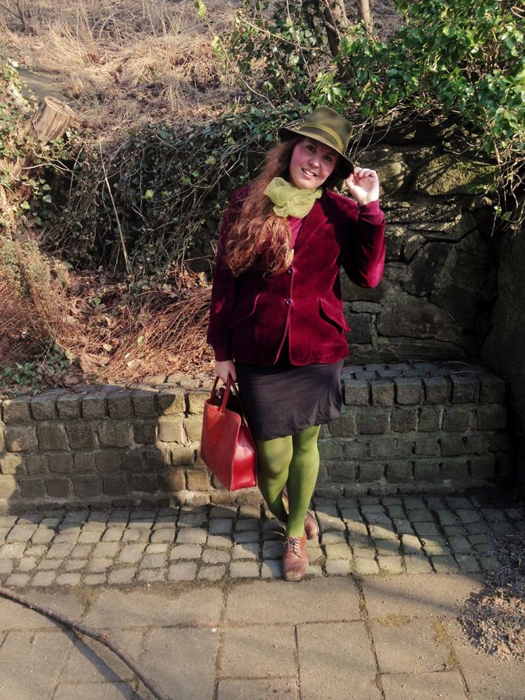 Minty legs, vintage velvet jacket and a mini skirt that blew up Marilyn Monroe style when I walked to work.