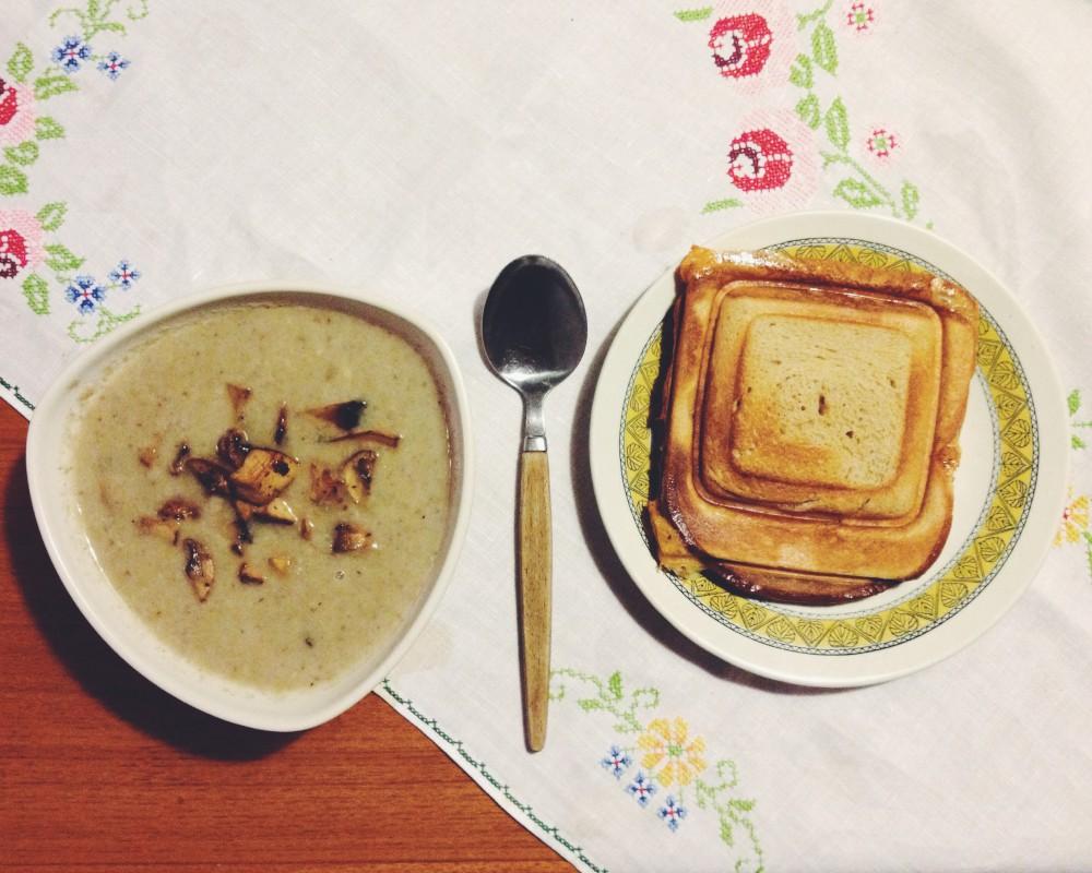 Pour into bowls, sprinkle the fried mushrooms over and eat with maybe a cheese toast on the side if you're into that (and who isn't?).