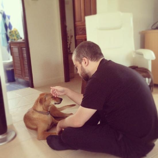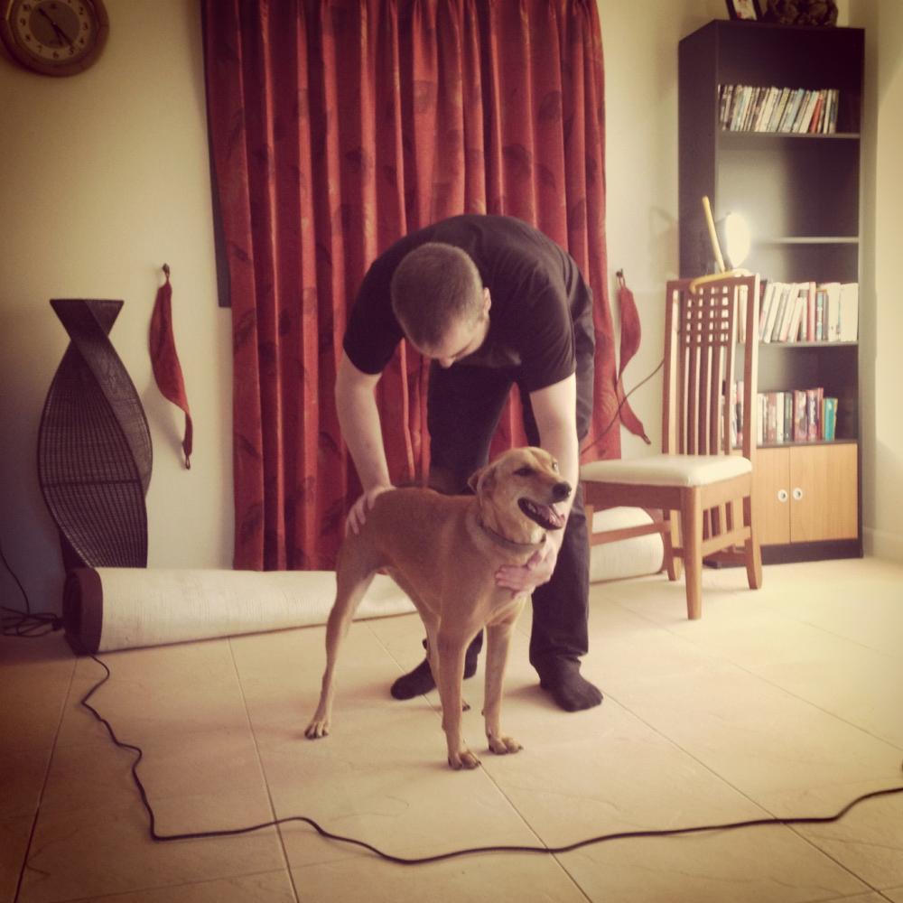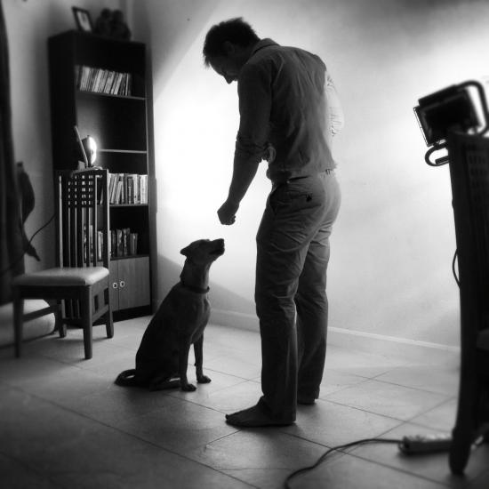 David tries to teach Dolly to sit but she seems to think she's getting an ass rub.