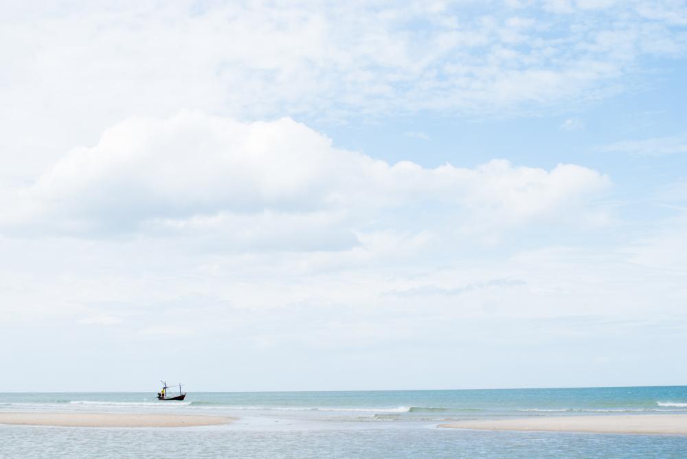 A tiny boat on the ocean! This looks like some sort of childrens book illustration to me. I think it would be about someone running away on the big, big ocean and experience new worlds that you thought only existed in the imagination.