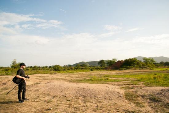 David had his camera monopod with him partly for the ability to take steady photos high up in the air but also to seek through the grass and bushes in front of us for snakes.