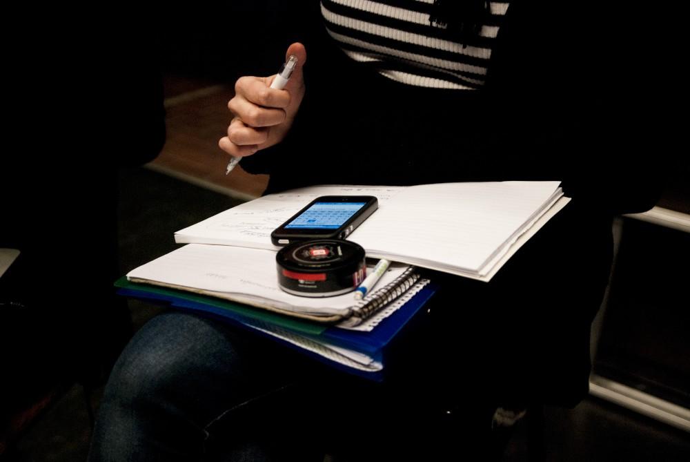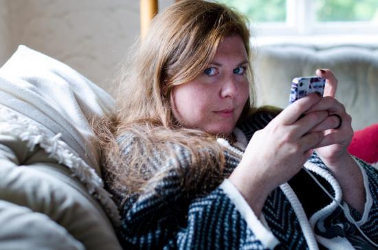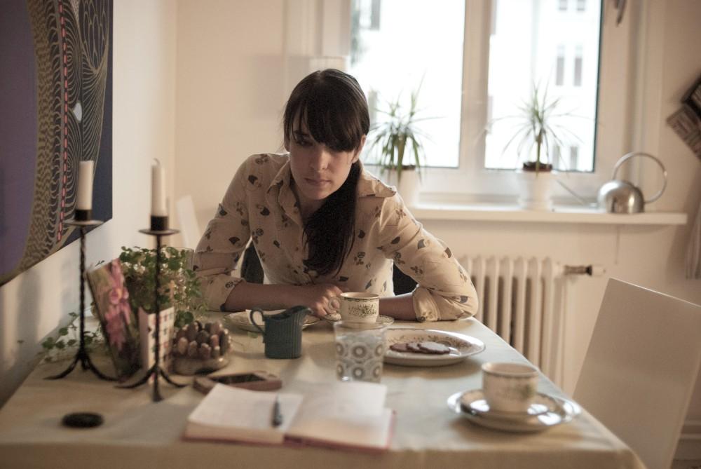 Frida, the director of Teater Esther, on one of our production meetings with all her important things within reach.