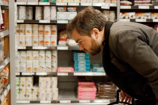 Sometimes David had to stand being photographed while choosing cookies in the grocery store.