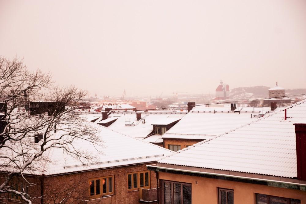 Winter landed on the roofs of Gothenburg.