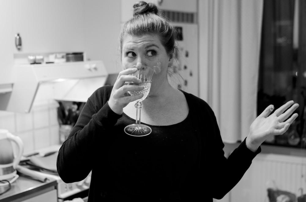 Flour on my nose and wine in my hand and music cranked up loud on the stereo.
